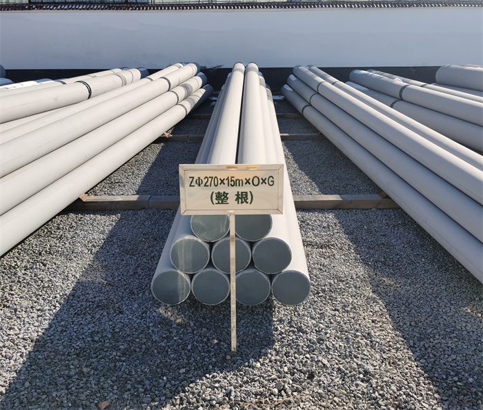 ①我公司生产的水泥电线杆分为非预应力电线杆和预应力电线杆两种,其中预应力水泥电线杆规格有:8米水泥电杆、10米水泥电杆、12米水泥电线杆、15米水泥电线杆等规格。非预应力水泥电线杆规格有:10米水泥电线杆、12米电杆、15米水泥杆、18米水泥电线杆、21米水泥电杆等水泥电杆。